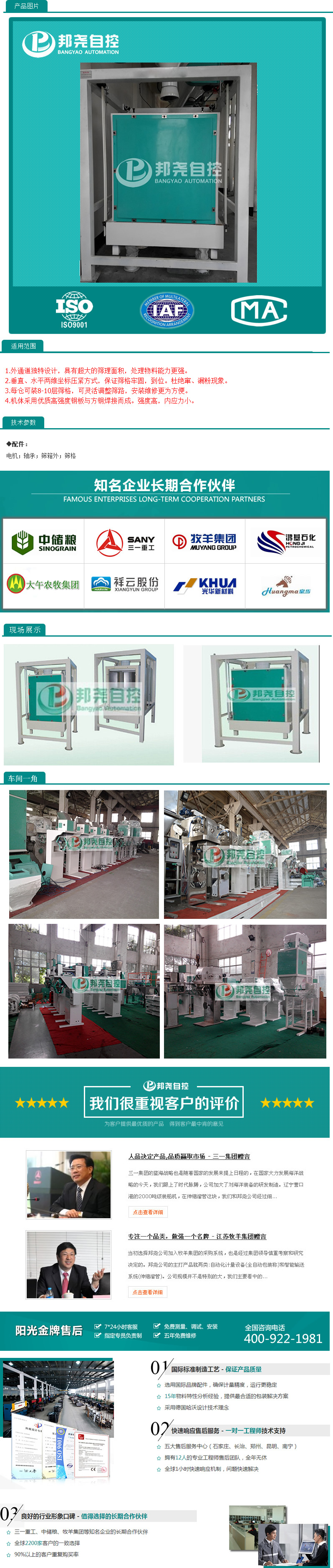 外通道獨特設計,具有超大的篩理面積,處理物料能力更強,垂直、水平兩維坐標壓緊方式,保證篩格牢固,到位。杜絕竄、漏粉現象。